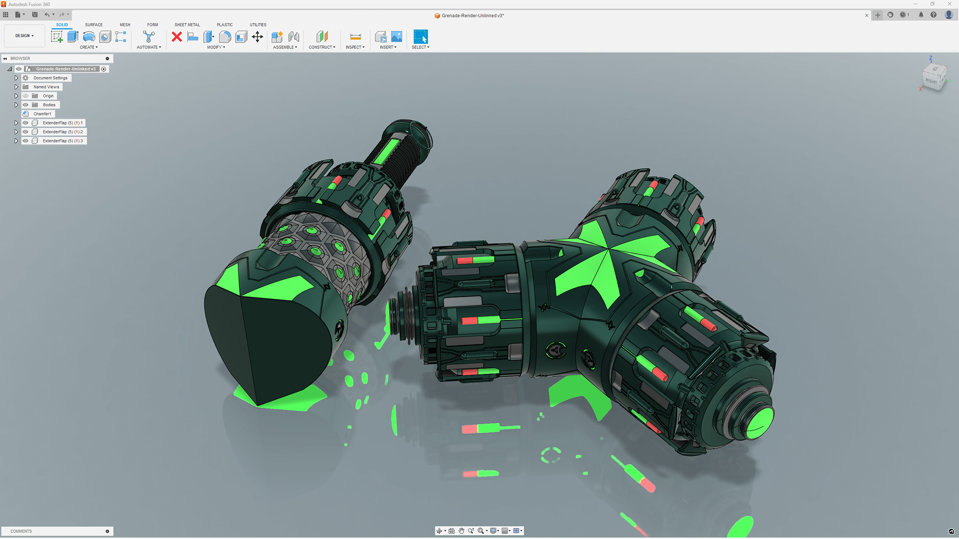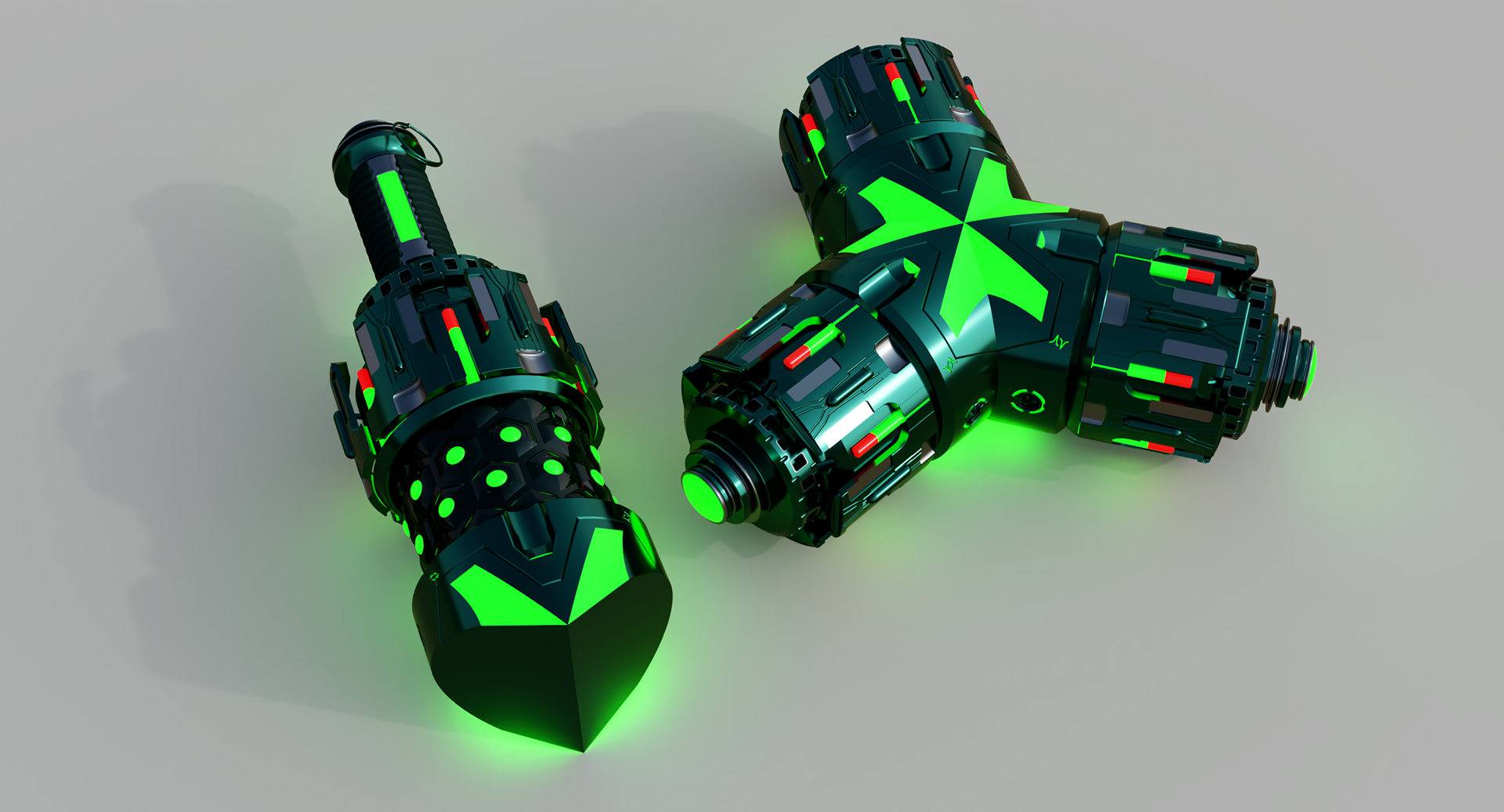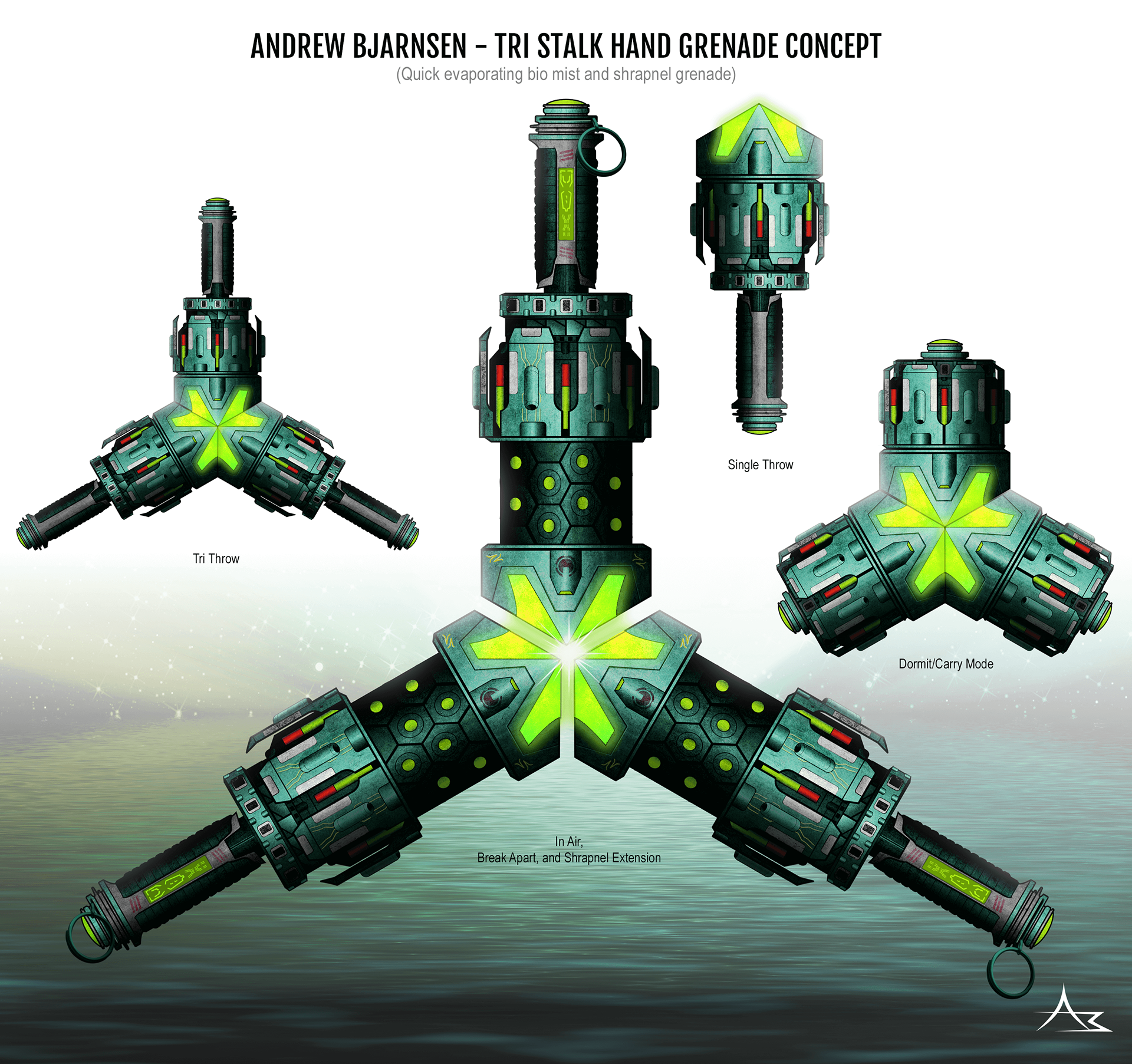 Sci-Fi Stalk Grenade - Modeled and Rendered in Fusion 360. I made the concept art in Illustrator/Photoshop :)